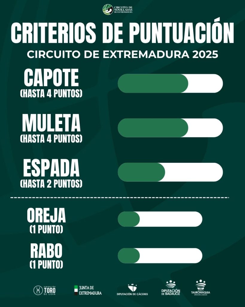 A partir del próximo domingo, los miembros del jurado deberán puntuar el capote, la muleta y la espada por separado. Tanto capote como muleta serán puntuados con un máximo de 4 puntos y la espada no podrá superar los dos puntos. Es por ello, que la suma de cada novillo seguirá con un máximo de 10 puntos.