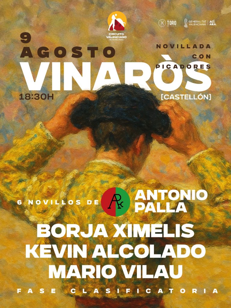 - Vinaròs (Castellón) (09/08): 6 novillos de Antonio Palla para Borja Ximelis, Kevin Alcolado y Mario Vilau. A las 18:30 horas