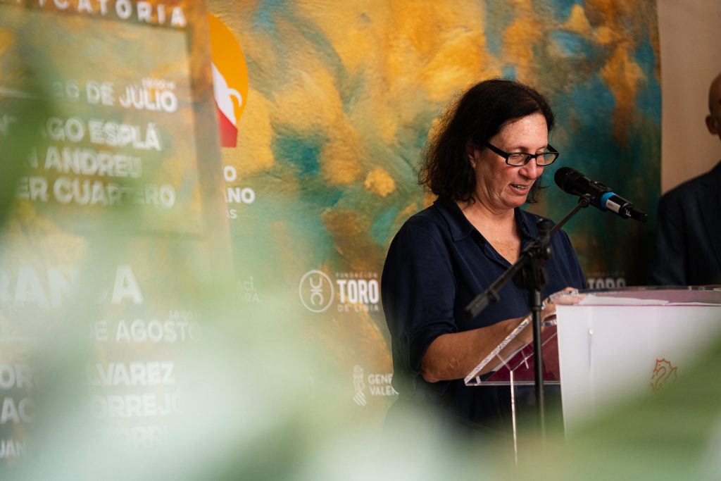 El acto contó con la presencia de Pilar Tébar, secretaria autonómica de Cultura, quien manifestó: «La tauromaquia es patrimonio cultural en España digno de protección”. Además, es esta edición no se ha querido dejar de lado a los afectados por la DANA del octubre pasado y es por ello que “nuestra implicación con la zona DANA, puesto que las dos plazas elegidas en Valencia son en zonas muy afectadas por este desastre: Utiel y Algemesí”.
