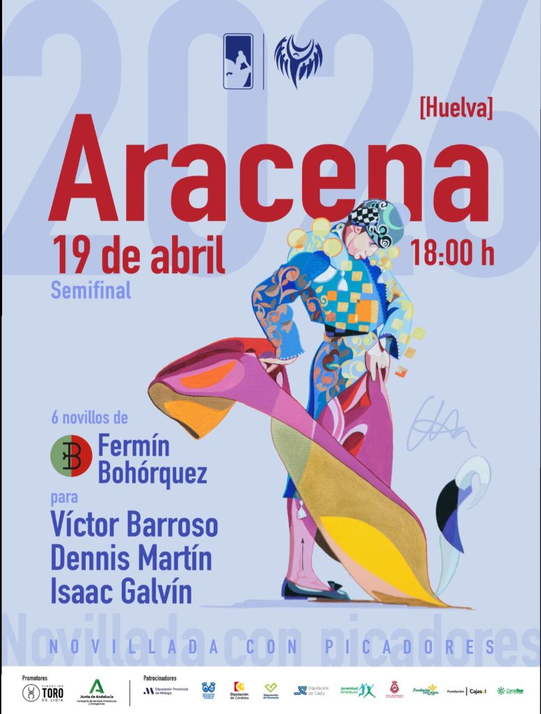 Domingo, 19 de abril – Aracena (Huelva) Novillos de la ganadería de Fermín Bohórquez para los novilleros: Víctor Barroso, Dennis Martín e Isaac Galvín.