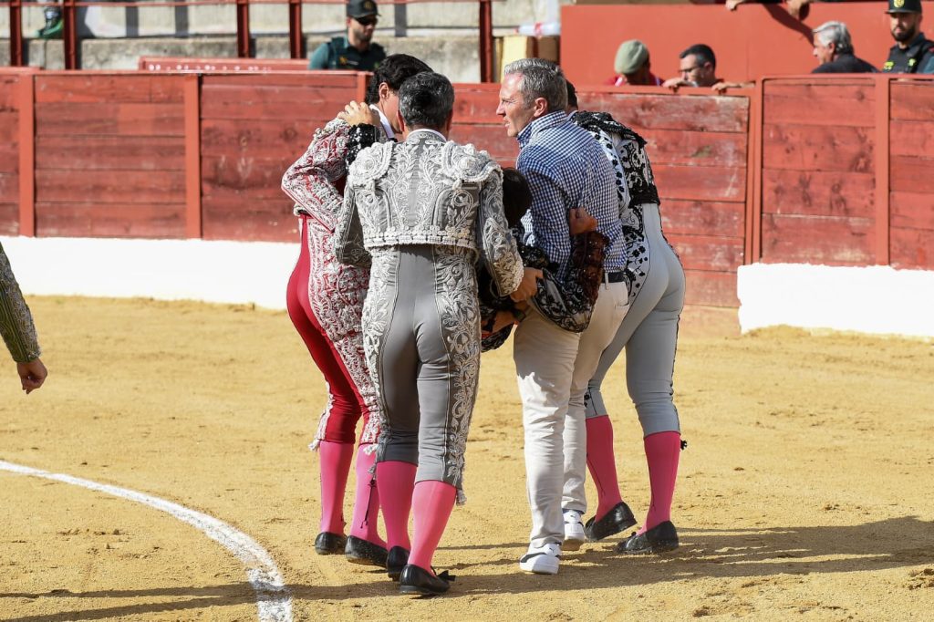 A porta gayola recibió López Ortega al primer novillo de la tarde de Los Eulogios. Siguió con un ramillete de veronicas muy templadas que arrancaron las ovaciones en los tendidos. De rodillas en los medios comenzó la faena el mexicano, y dejó naturales muy ligados a un novillo que repetía. En un muletazo fue prendido de forma muy fea, quedando desprendido en el albero. Herido.